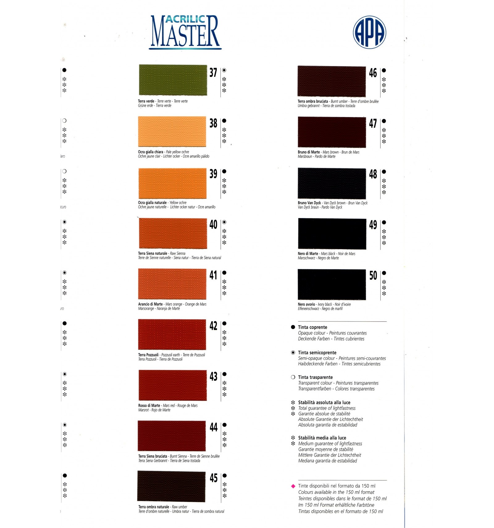 Colori acrilici da ottimi pigmenti, la loro densità offre diverse possibilità di utilizzo sia tradizionalmente a pennello che con spatole da pittura. Colori perfettamente miscelabili tra loro con un buona resa di stesura.