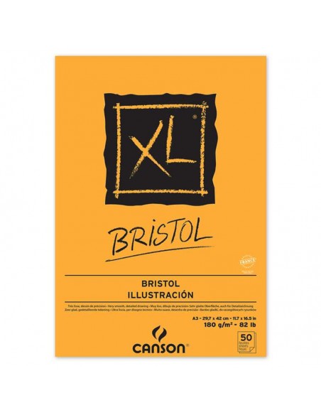 Canson® XL® Bristol è composto da carta ultra bianca, estremamente liscia e con una finitura satinata. Molto resistente alle ripetute correzioni e raschiature. E’ perfetto per matita, penna, punta tubolare, pennarello, aerografo e qualsiasi tecnica che richieda una superficie liscia e tratti precisi.