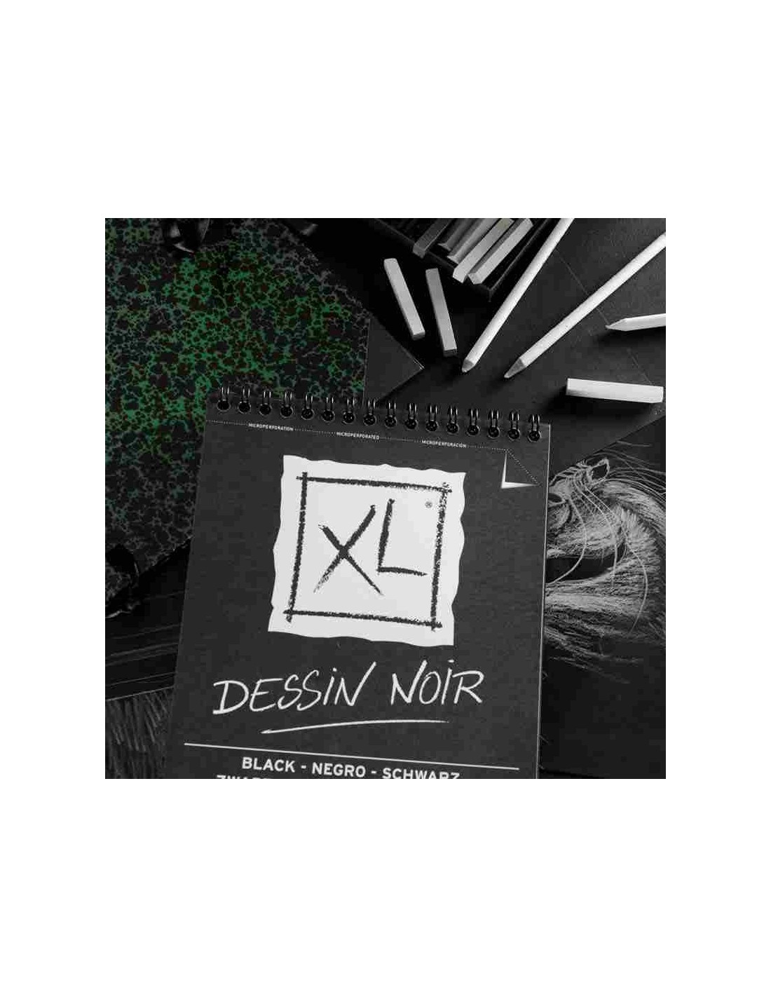 Realizzato con carta nero profondo, è ideale per ogni opera in cui si vuole risaltare il contrasto. Canson®XL® Black si adatta ai lavori intensi cosi come per semplici schizzi o disegni. Il lato liscio è perfetto per pennarello e marcatore mentre il lato ruvido per matita e pastello.