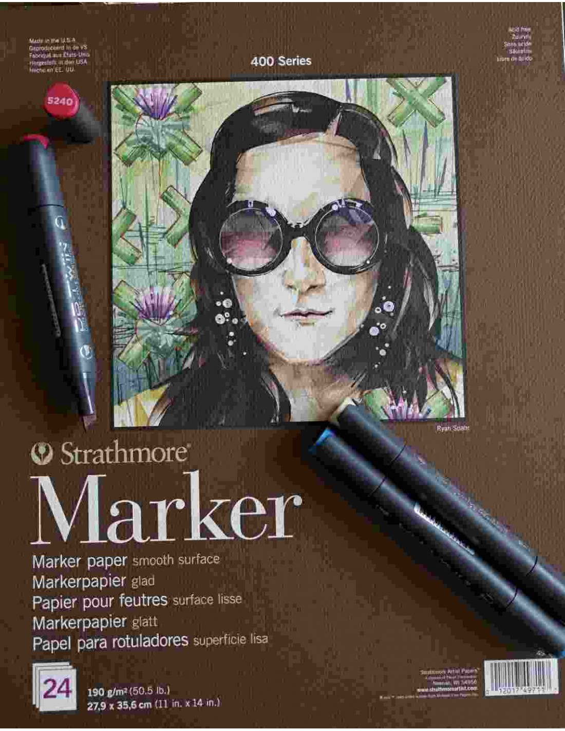 La carta per marker serie 400 Strathmore è stata sviluppata per i migliori artisti che creano opere d'arte utilizzando qualsiasi pennarello o marker. La superficie estremamente liscia consente ai Marker di scorrere e applicarsi facilmente. I colori appaiono vibranti e nitidi. Il foglio è resistente agli acidi ed ha peso sostenuto, quindi gli artisti possono applicare più strati di colore.