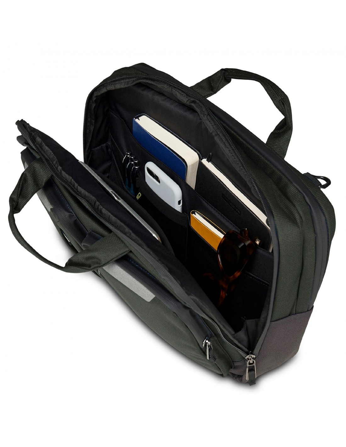 Tira zip in metallo personalizzato con sistema di sicurezza. Scomparto porta laptop fino a 15.6'' (fino a 38x26x2 cm). Tasca porta tablet e smartphone. Tasche porta documenti. Esternamente tasche multiuso frontali, maniglia superiore.