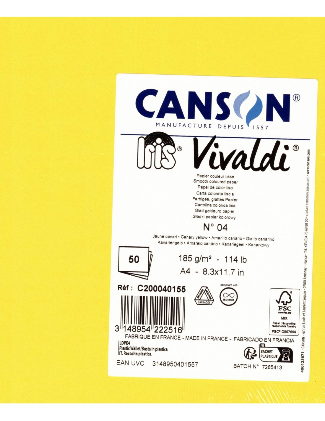 Cartoncino Colorato Iris Vivaldi A4 - Conf. 50 Fg. 185gr - Canson®