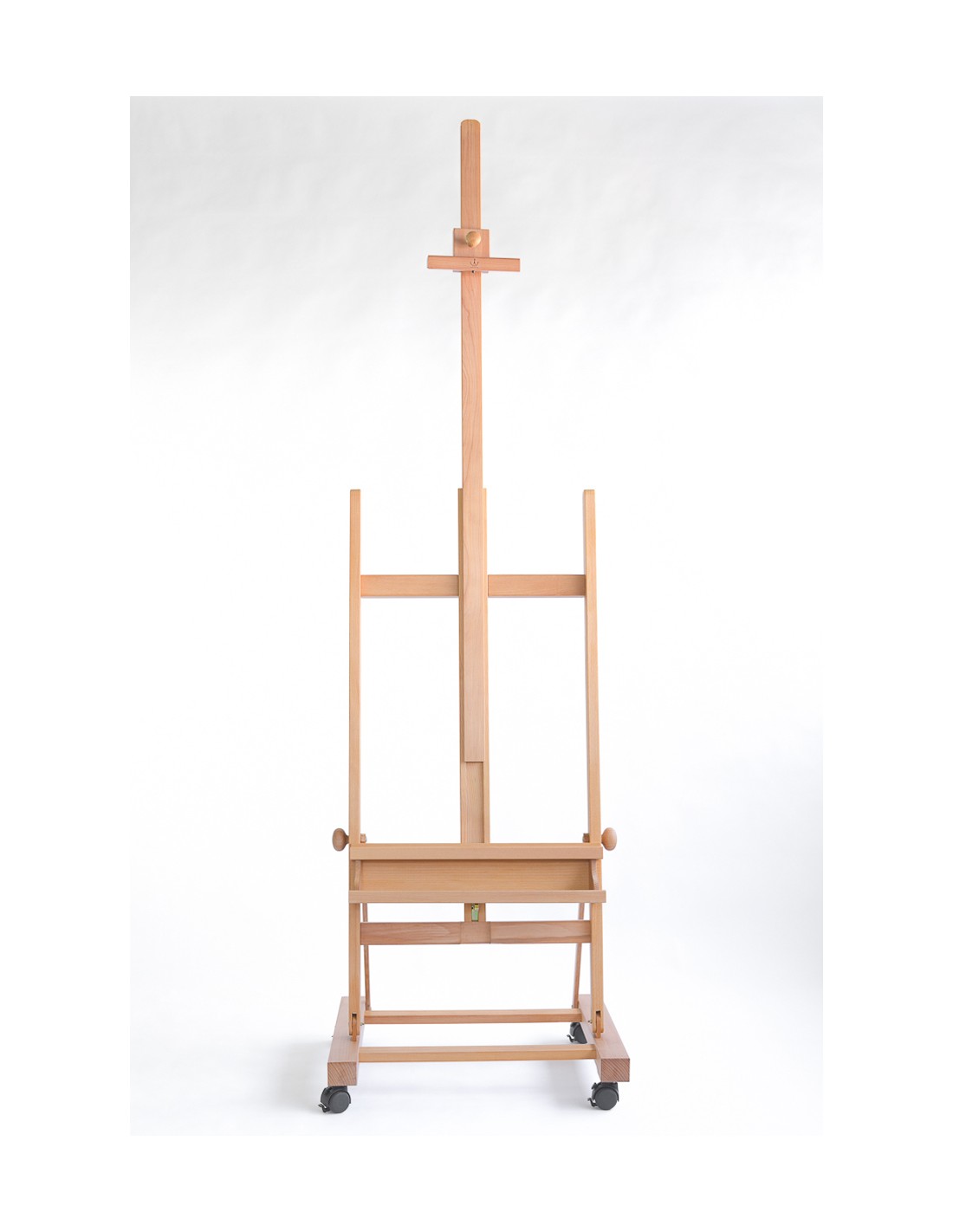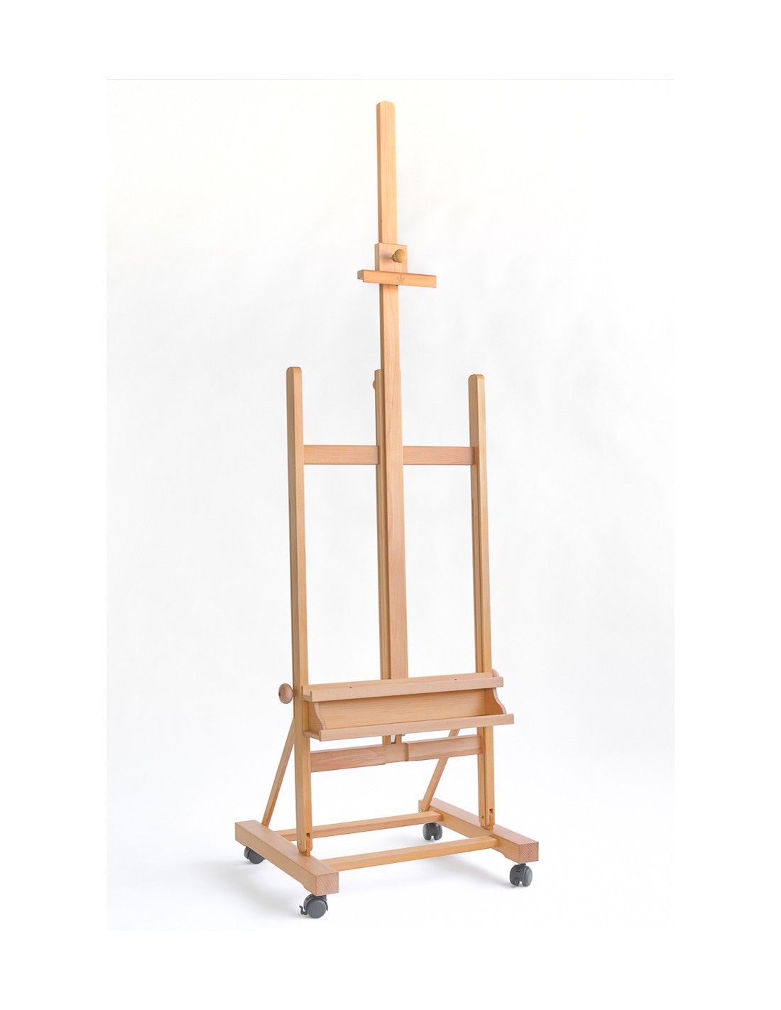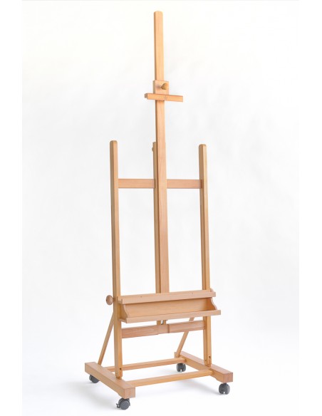 Il CS-200 BIS di Cappelletto è un cavalletto da studio grande con ruote, in legno di faggio oliato molto robusto. Rispetto ad altri prodotti della stessa gamma viene apprezzato soprattutto per l’asta centrale allungabile con sistema telescopico che consente di raggiungere un’altezza massima di 357 cm da terra.