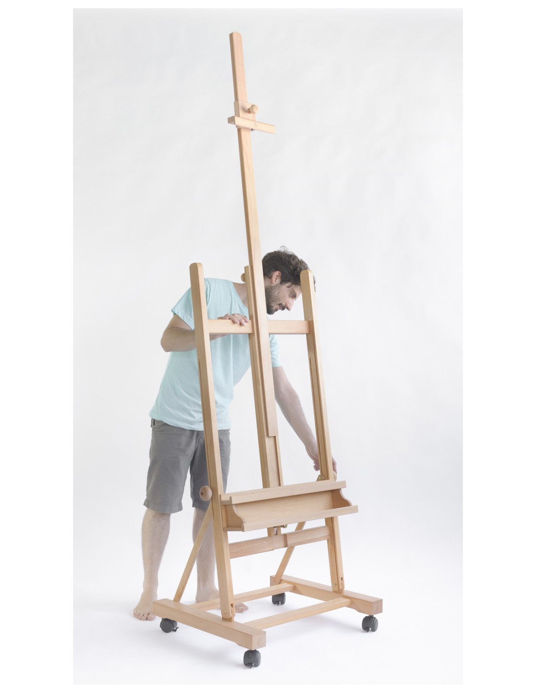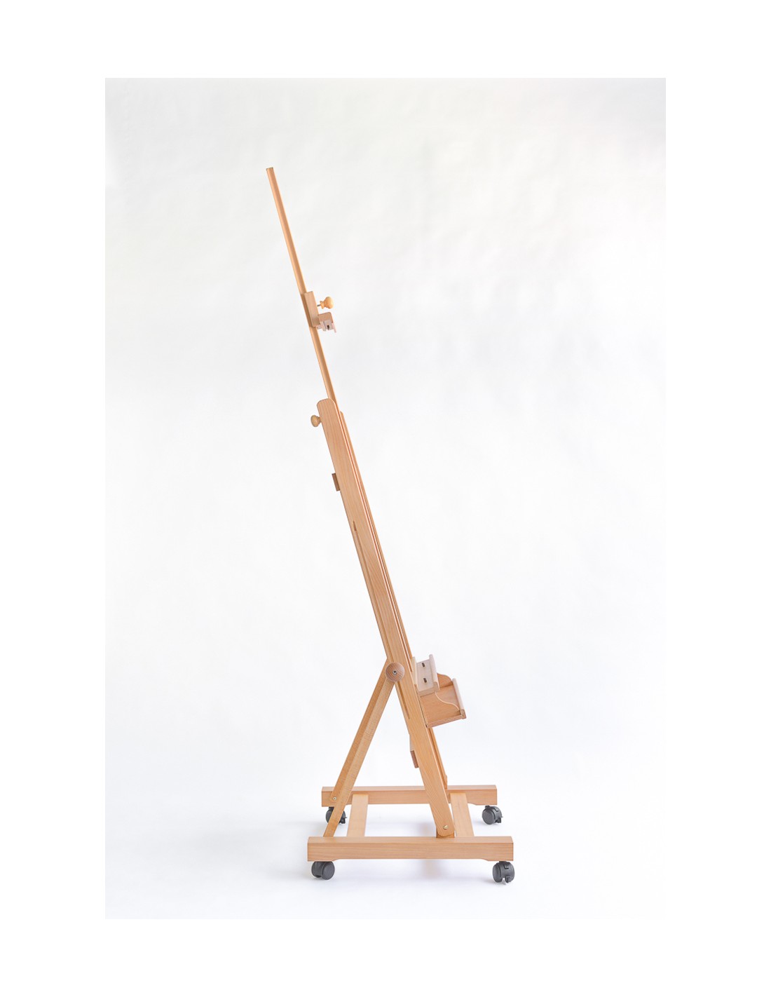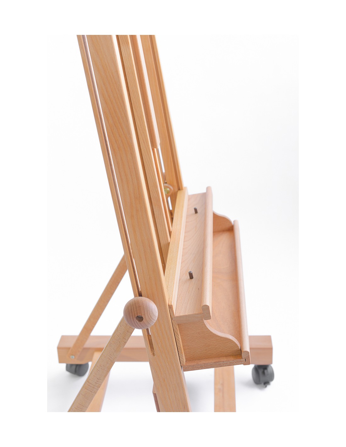 Il CS-200 BIS di Cappelletto è un cavalletto da studio grande con ruote, in legno di faggio oliato molto robusto. Rispetto ad altri prodotti della stessa gamma viene apprezzato soprattutto per l’asta centrale allungabile con sistema telescopico che consente di raggiungere un’altezza massima di 357 cm da terra.