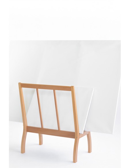 Il PC-6 di Cappelletto è un porta disegni classico in legno di faggio oliato molto robusto e capiente. Questo articolo pesa 5,5 kg, la base misura 49 x 74 cm e l’altezza è pari a 64 cm. Ha le superfici lisce e sagomate che evocano forme antiche.