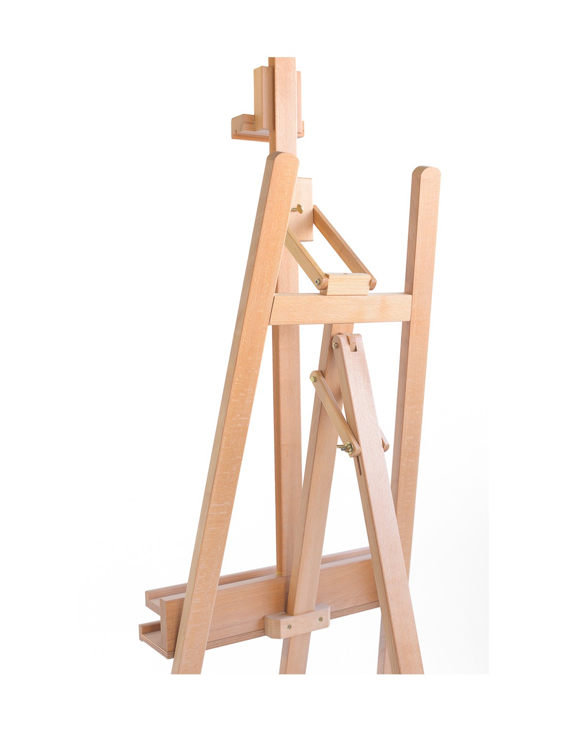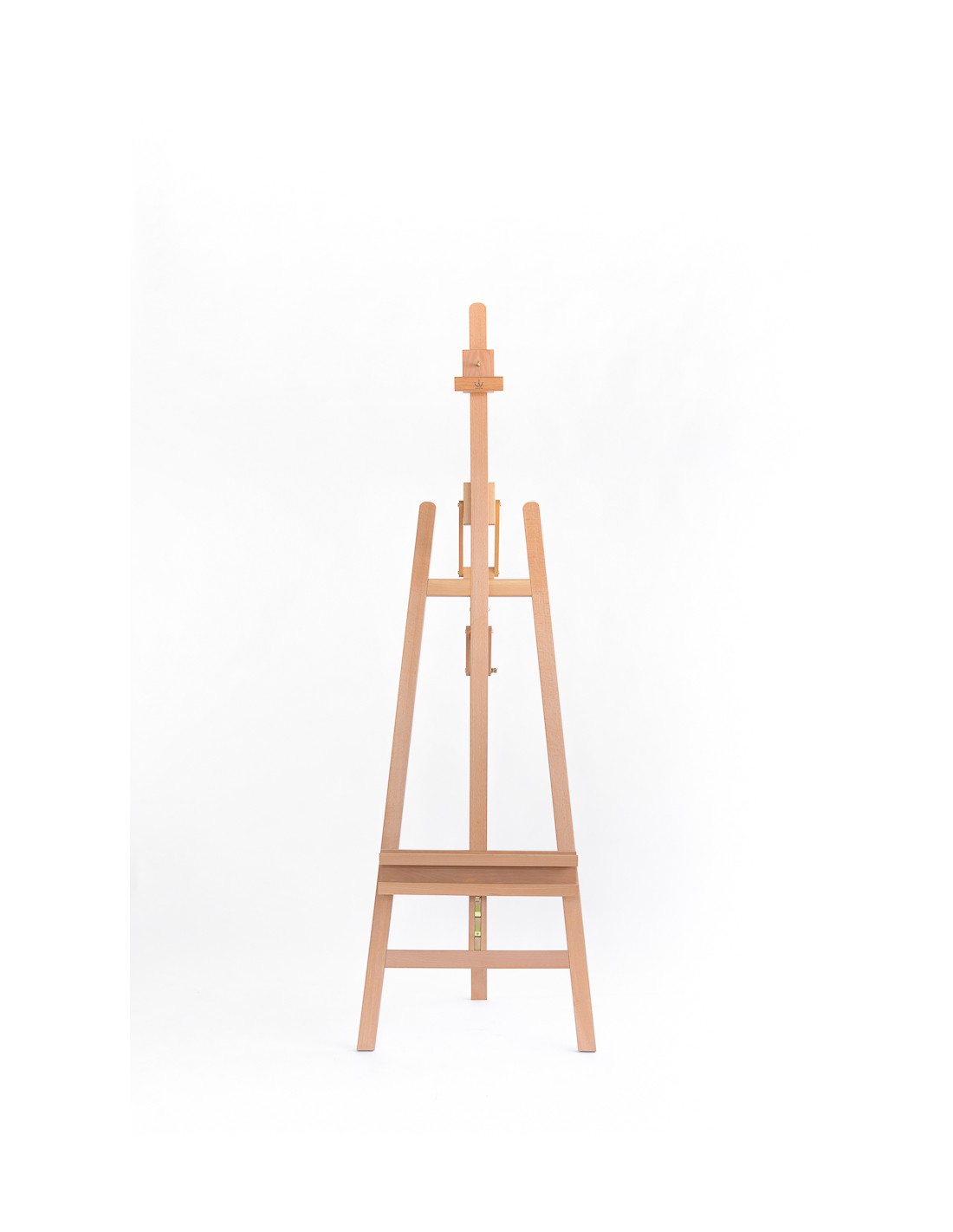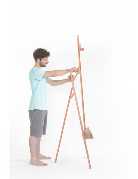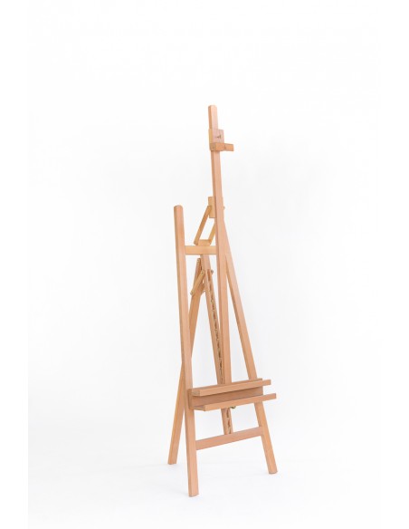 Il CL-22 di Cappelletto è un cavalletto a lira doppia asta, in legno di faggio oliato. L’altezza minima del cavalletto è 165 cm e massima 230 cm. La doppia mensola porta-tele è regolabile in altezza tramite un sistema di cremagliera metallico fissato da un cricchetto e può portare tele fino a 4,5 cm di spessore e 130 cm di altezza.