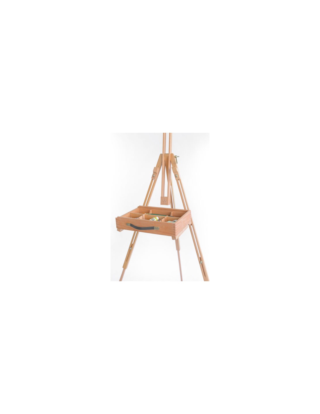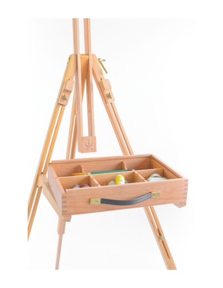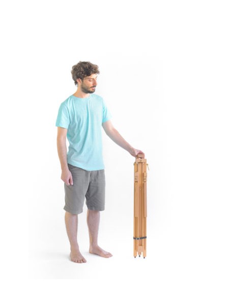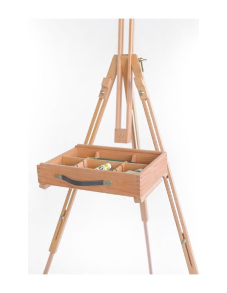 Il cavalletto da campagna CM-2 con braccioli di Cappelletto è costruito in pregiato massello di faggio oliato. Le dimensioni della base sono 85×60 cm e altezza pari a 185 cm. Questo cavalletto supporta tele fino ad un massimo di 4 kg e 112 cm di altezza.