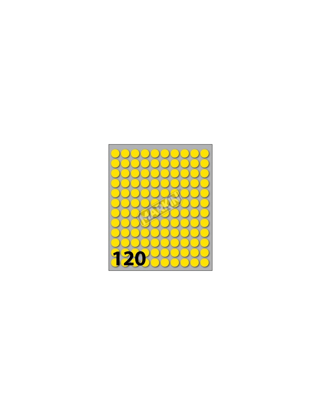 Busta etichette colorate diametro Ø 10mm. In busta da 10 fogli formato 152,5x125mm. Ogni singola foglio contiene 120 etichette per un complessivo di 1200 pezzi. Adesivo permanente.