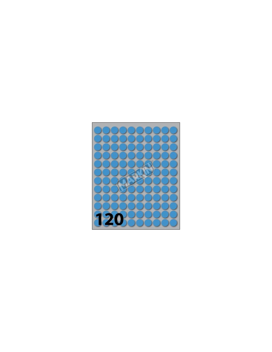 Busta etichette colorate diametro Ø 10mm. In busta da 10 fogli formato 152,5x125mm. Ogni singola foglio contiene 120 etichette per un complessivo di 1200 pezzi. Adesivo permanente.