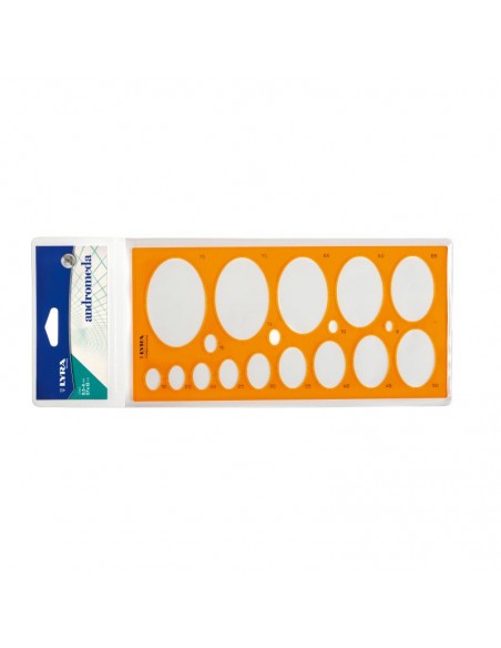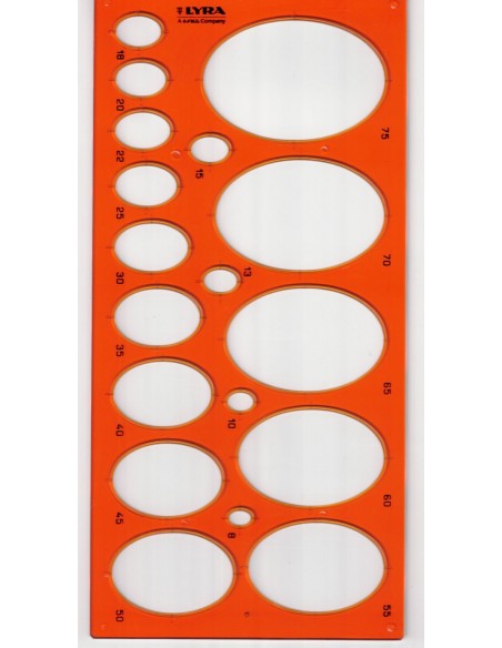 Maschera normografica in plastica per disegno di ovali con tira china. Formato esterno 27x13cm. - 0,5 - 4mm
