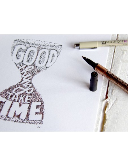 Il marcatore a vernice Pen-Touch lascia un segno usando il pennarello Pen-Touch EF Extra Fine con un pennino di dimensioni extrafini (0,7 mm) in vernice di qualità permanente, che è chimicamente stabile, impermeabile e resistente allo sbiadimento. Il pennarello Pen-Touch scrive su un'ampia varietà di superfici tra cui cartoncino, plastica, legno, vetro, porcellana, carta e metallo in colori opachi e vivaci. Sebbene i pennarelli scrivano su molte superfici, il fatto che il segno sia permanente o meno dipende dalla superficie e dalle condizioni (lavaggio, strofinamento, prodotti chimici, calore, freddo, ecc.) applicate al segno. Ideale per scrivere e decorare inviti, biglietti di auguri, insegne, CD, album di ritagli, diari e carta patinata. I pennarelli Pen-Touch sono disponibili in diversi colori.