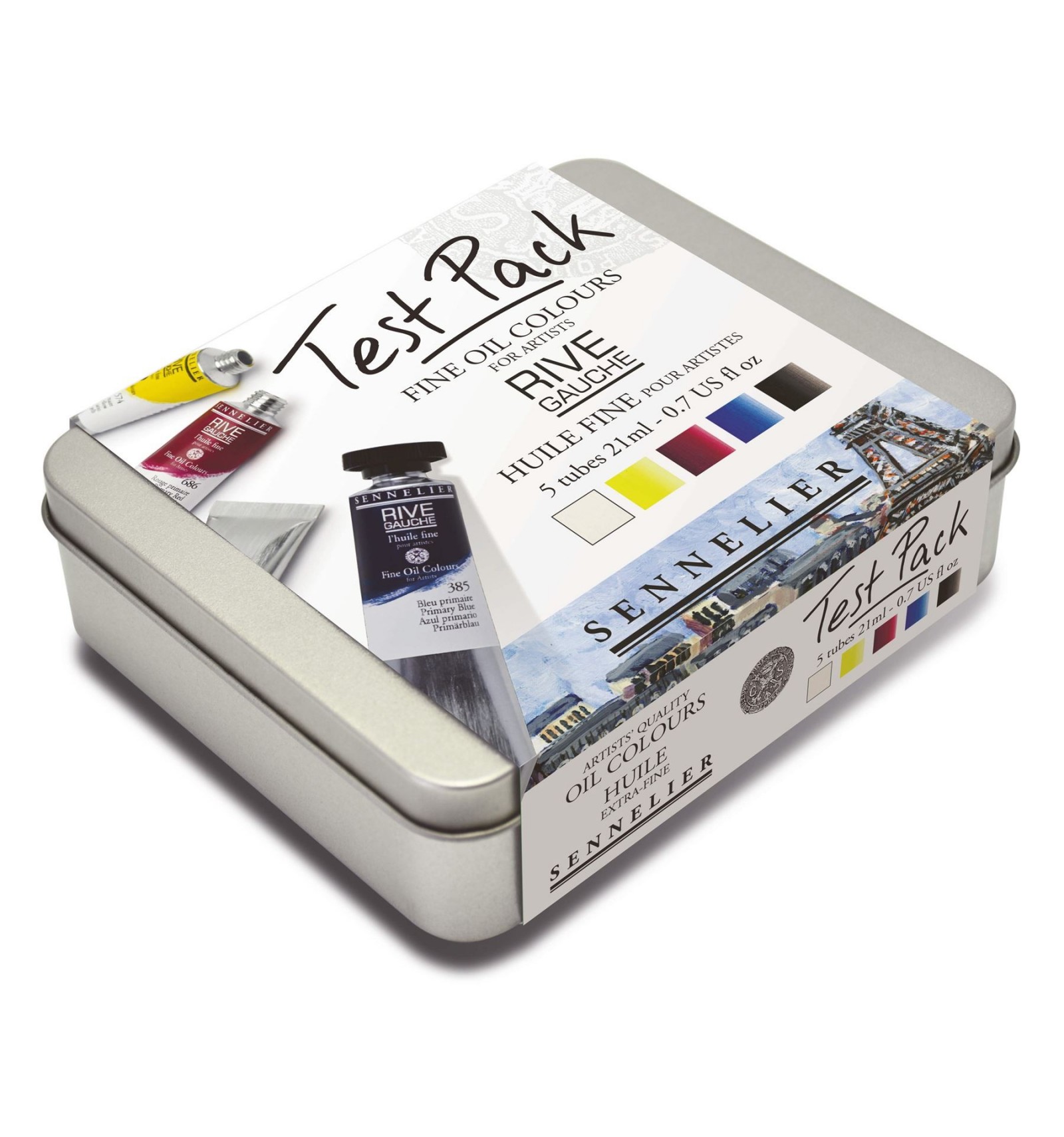 Sennelier Test Pack Olio Rive Gauche 5 Tubi da 21ml. Scatola in Metallo