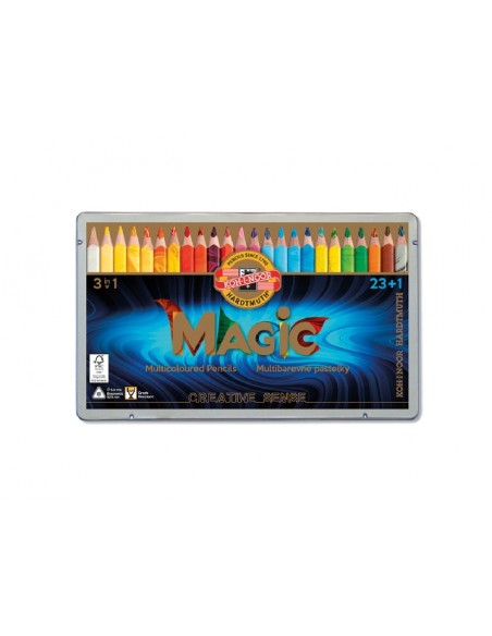 Astuccio matitoni Magic triangolari. Ogni matita ha una speciale mina composta da 3 differenti tinte. Con un solo tratto si possono creare effetti incredibili con un risultato molto naturale. La forma triangolare rende molto anatomica l'impugnatura e l'utilizzo ad ogni fascia di età. Ideali per realizzare effetti 3D