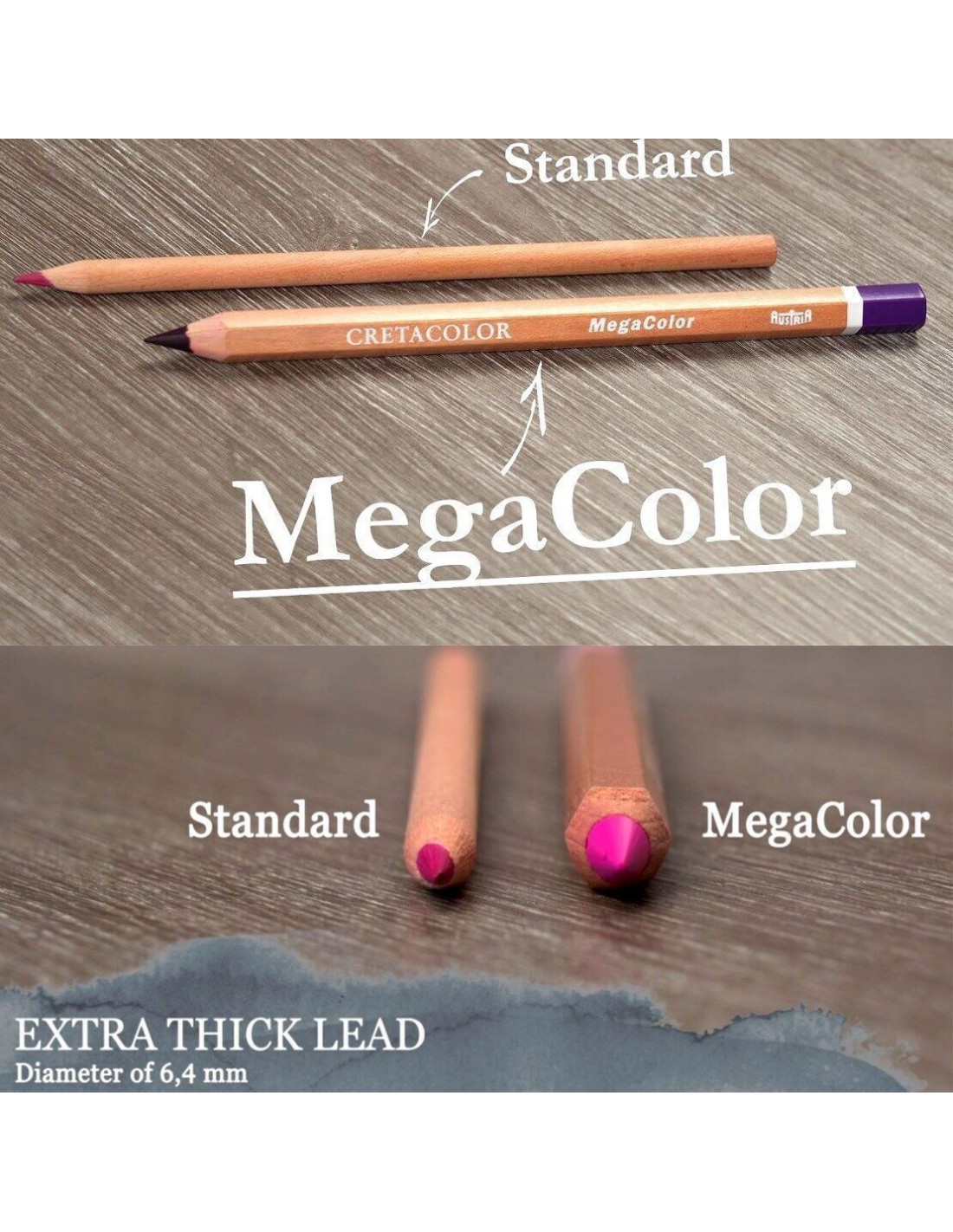 Set da disegno in scatola metallica Mega Color, 12 colori metallici altamente pigmentati per accenti scintillanti e colorazione opaca, specialmente su superfici scure, diametro extra spesso della mina 6,4 mm, tratto morbido, ricco e leggermente ceroso.
