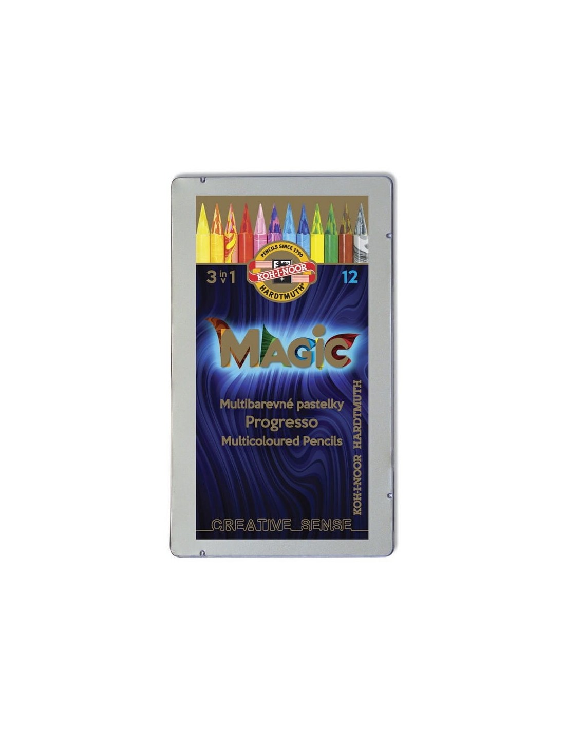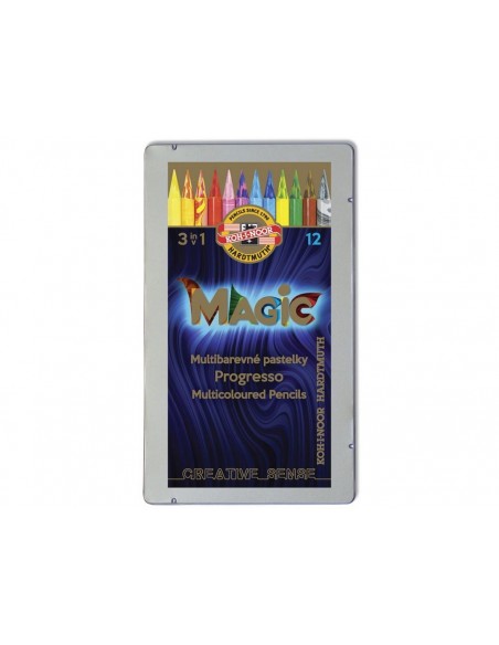 Set matite colorate Magic PROGRESSO tutta mina, in astuccio in metallo. Matita tutta mina diametro da 7.6mm. Ogni matita è composta da 3 differenti tinte. Con un solo tratto si possono creare effetti incredibili con un risultato molto naturale.