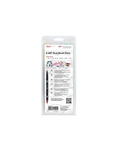 Set 6 pennarelli Dual Brush Tombow colori pastello. Due punte in fibra: sottile per tracciare linee precise, pennello per colorare ampi spazi. Inchiostro a base d'acqua, atossico, inodore, acid free.