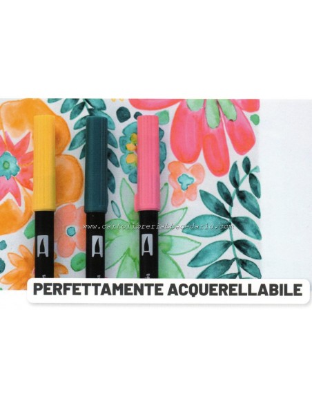 Set 12 pennarelli Dual Brush Tombow colori pastello. Due punte in fibra: sottile per tracciare linee precise, pennello per colorare ampi spazi. Inchiostro a base d'acqua, atossico, inodore, acid free. I colori non sbavano, possono essere miscelati e acquarellati tra di loro per crearne di nuovi.