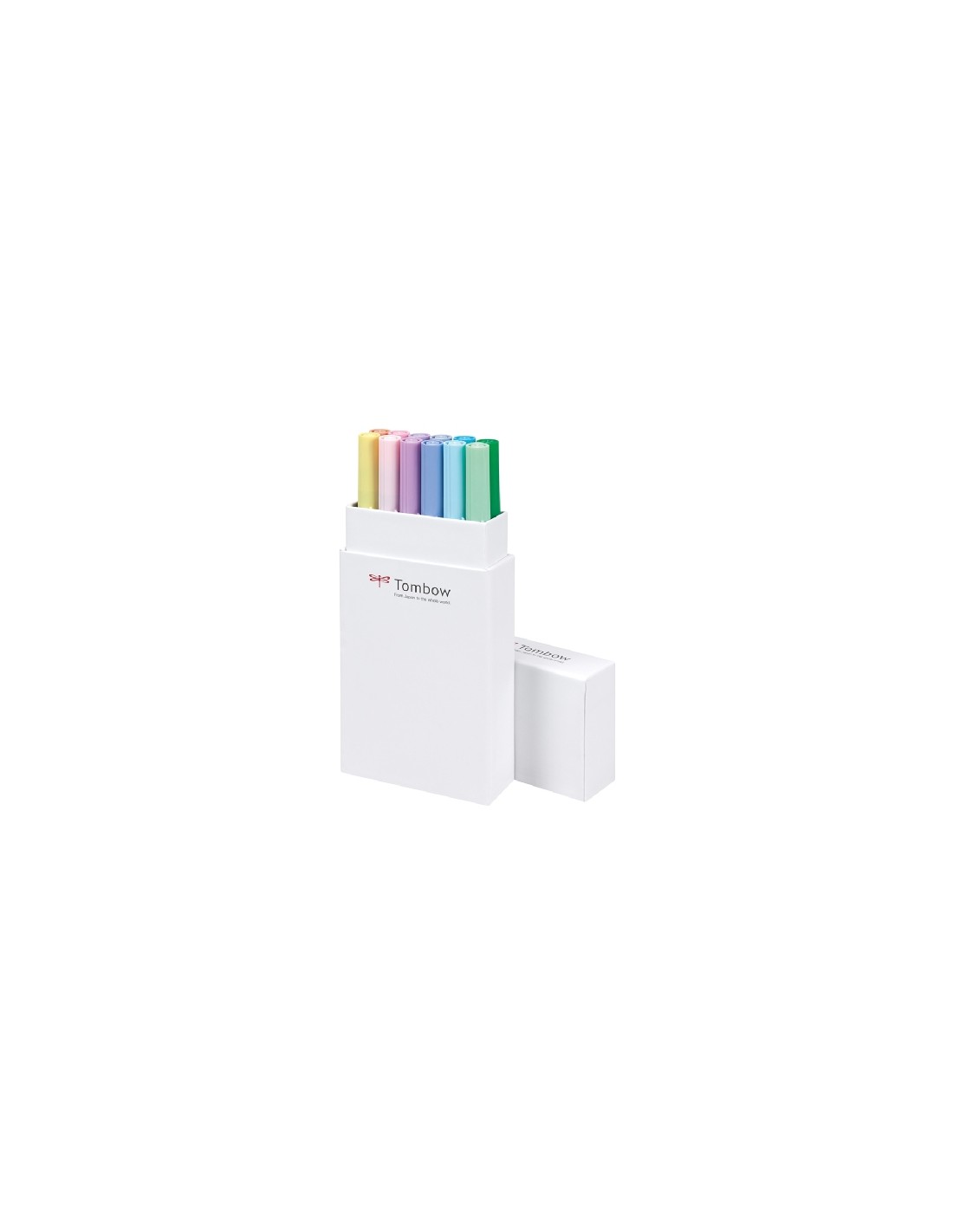 Set 12 pennarelli Dual Brush Tombow colori pastello. Due punte in fibra: sottile per tracciare linee precise, pennello per colorare ampi spazi. Inchiostro a base d'acqua, atossico, inodore, acid free.