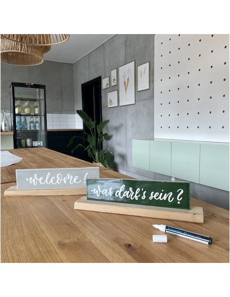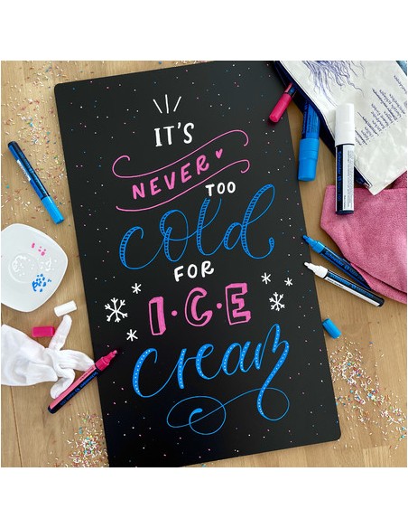 - Inchiostro con gesso liquido a base d'acqua, perfettamente removibile con un panno umido da superfici lisce