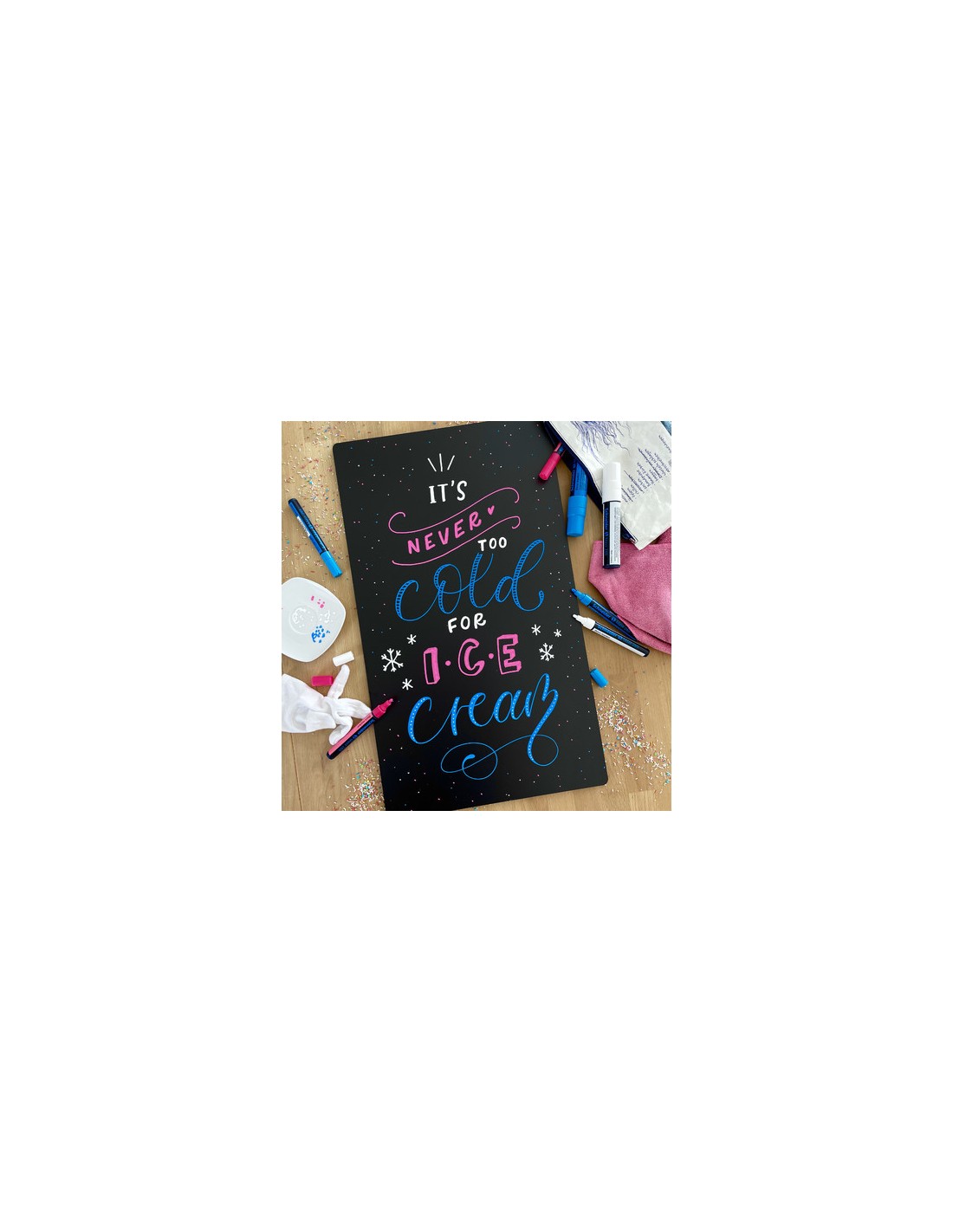 • Pigmento di gesso liquido a base d'acqua, perfettamente removibile con un panno umido da superfici lisce