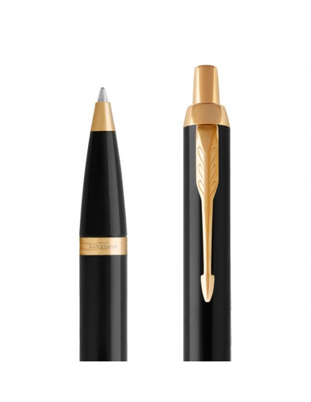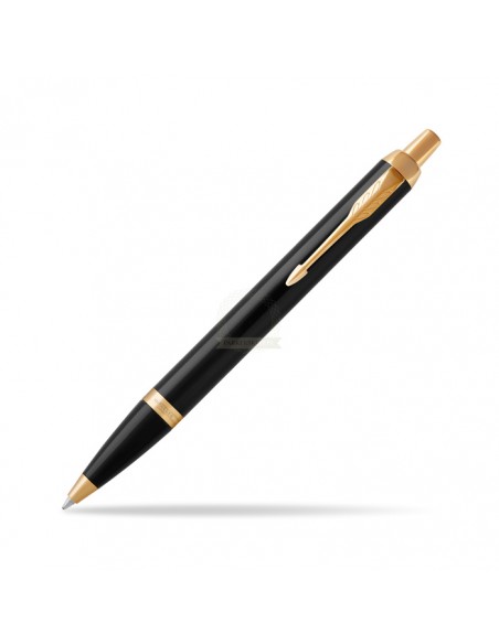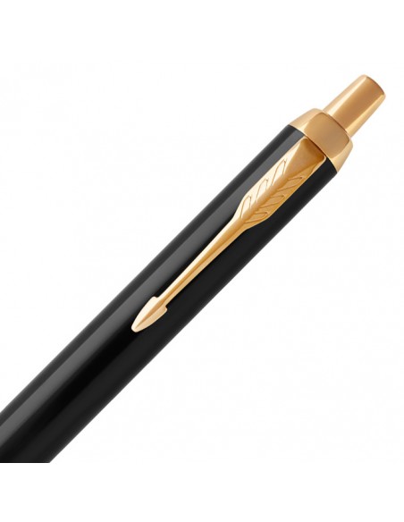 La penna a sfera Parker IM Black GT è icona di eleganza moderna dal design unico. Corpo e impugnatura monocromatici realizzati in pregiata resina nera lucida con eleganti finiture color oro e impreziosito con il caratteristico clip dorato con punta a freccia. Chiusura a scatto.