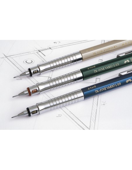 Il portamine TK-Fine Vario L 0.5 mm è ideale per i disegni di precisione. E' possibile scegliere tra 3 colorazioni del fusto: Verde Scuro, Blu Argento. La mina 0.5 mm è indicata per linee sottili e si ritrae completamente, ha il gommino incorporato e alla base ha l'indicatore di durezza di mina utilizzata.