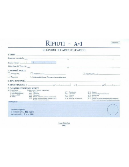 Blocco Rifiuti Registro Carico-Scarico Detentori Modello A DU165820000 - Data Ufficio