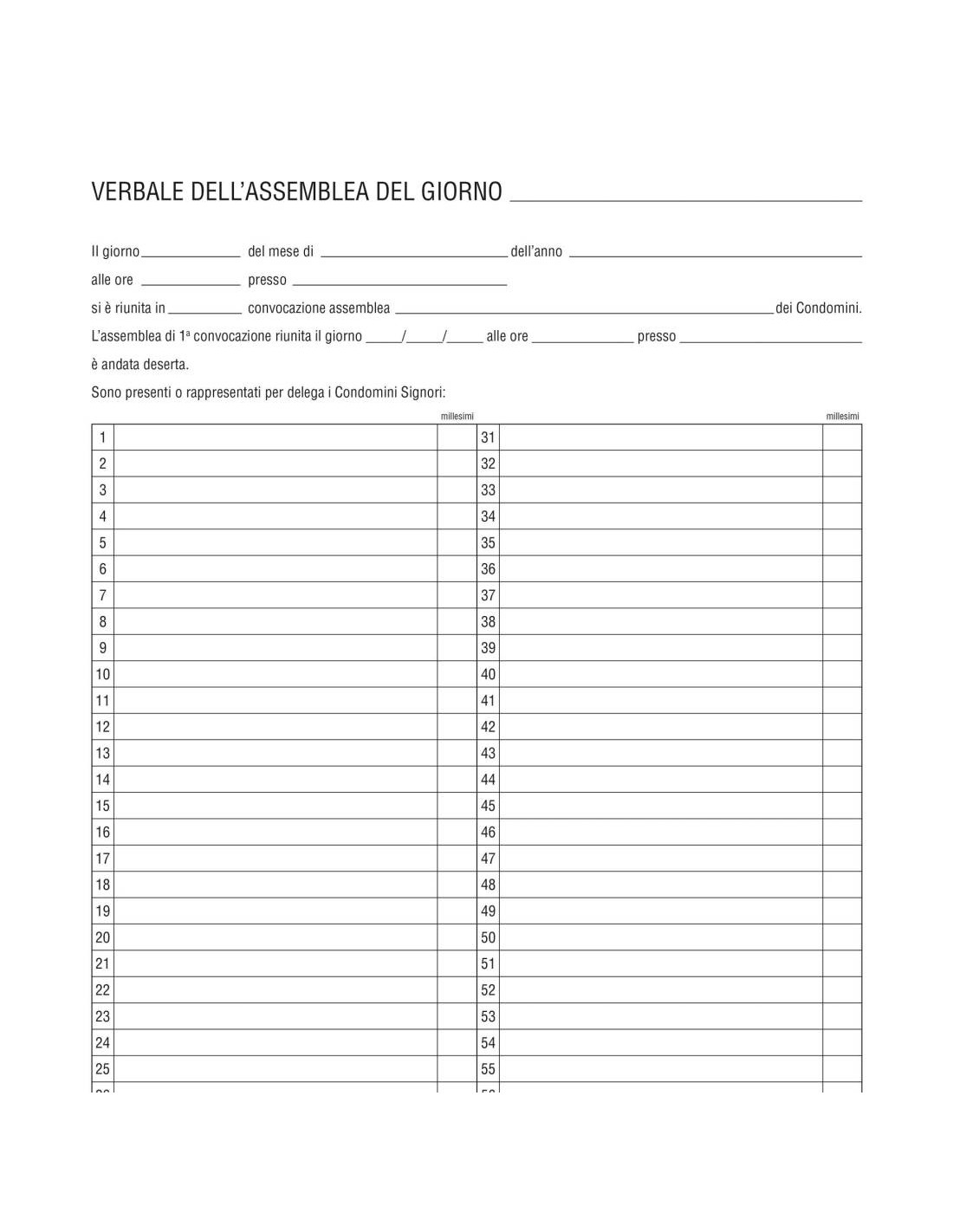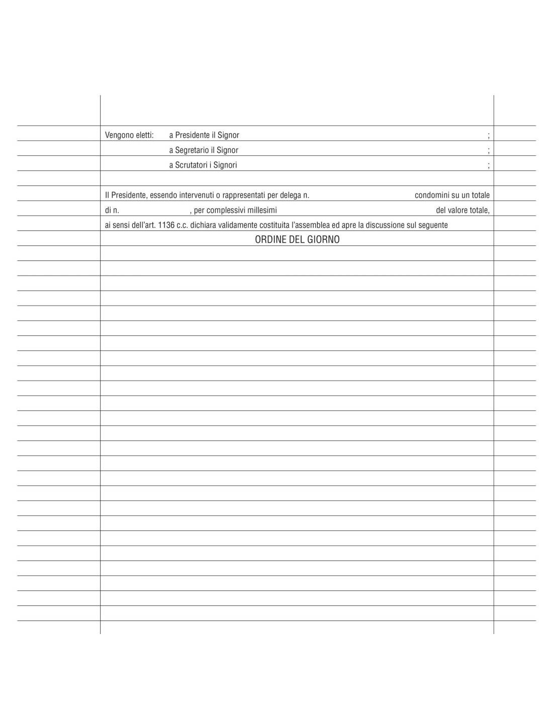 Verbale assemblea 92 pagine numerate - Formato 31x24,5