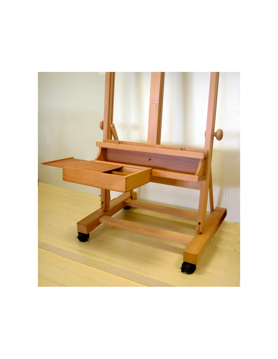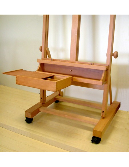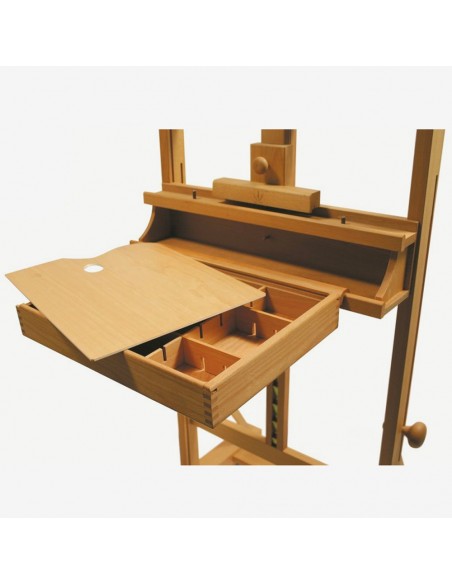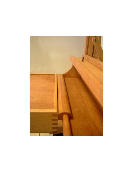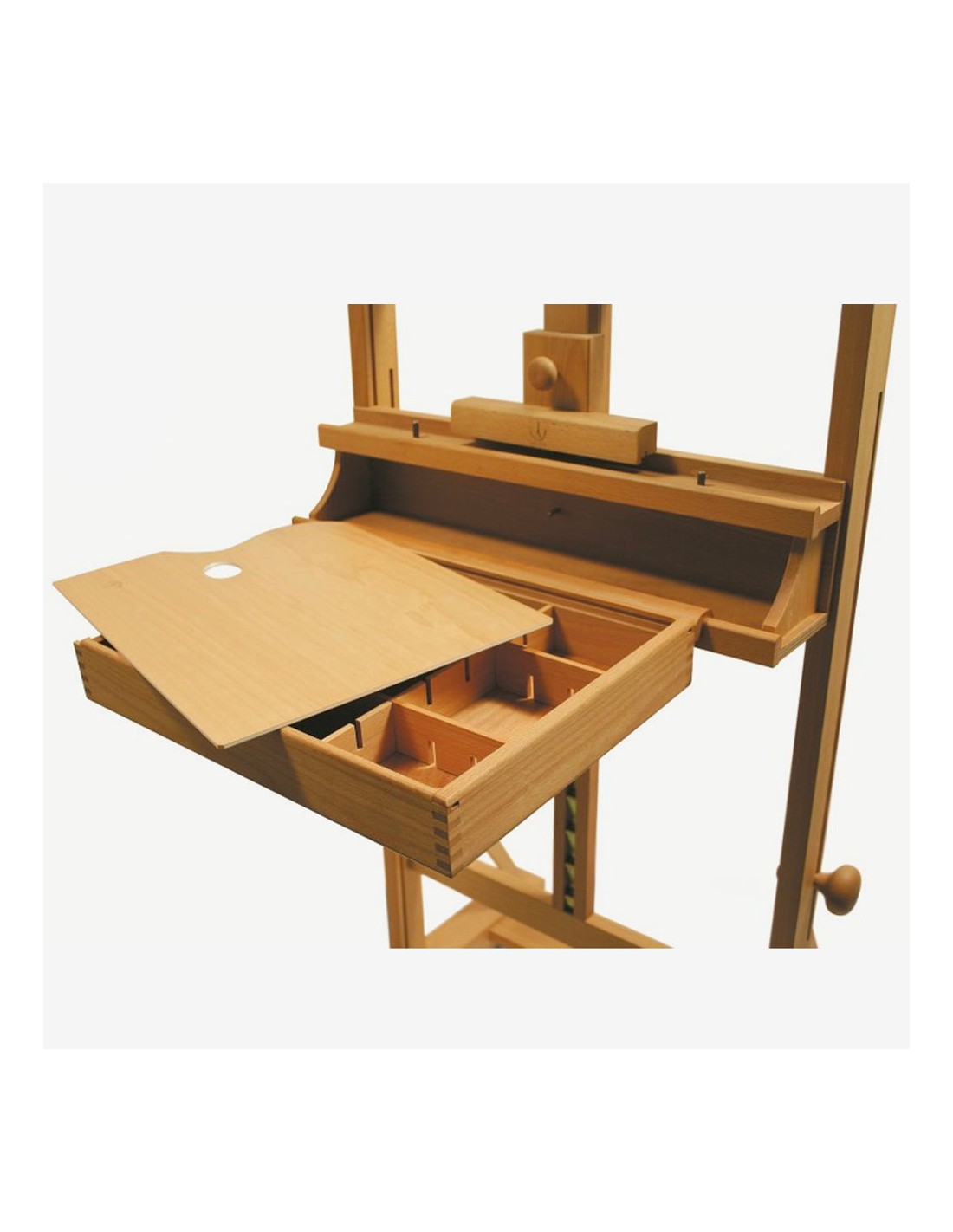 Cassetta porta colori applicabili ad incastro in legno di faggio oliato. Applicabili come estensione della mensola a tutti i cavalletti da studio e a lira della Cappelletto e tutti i cavalletti provvisti di mensola con rialzo