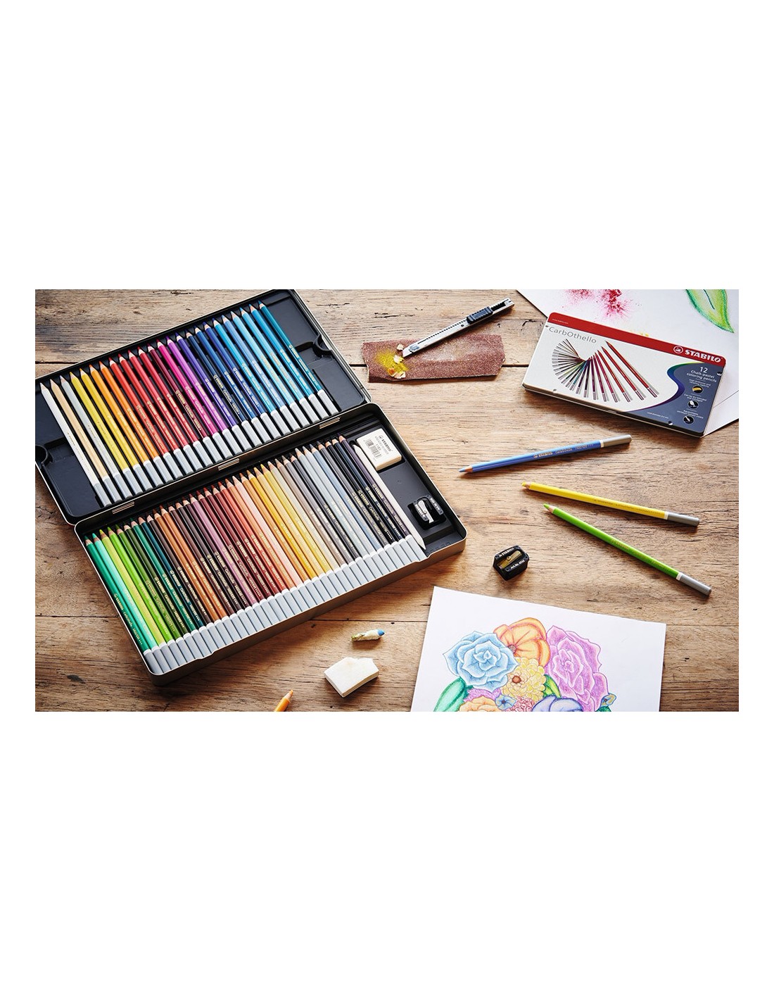 La collezione di matite colorate STABILO CarbOthello è disponibili in una gamma completa di 60 tonalità. Possono essere miscelati con le dita o con l’aiuto di uno sfumino per utilizzare al meglio e creare una varietà di effetti artistici.