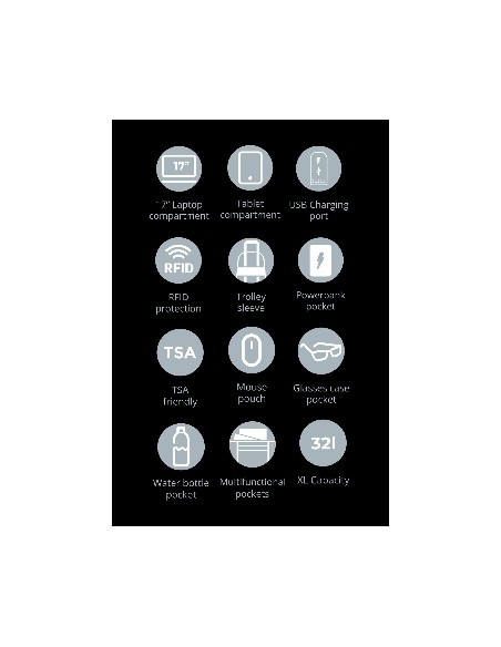 – Lo scomparto imbottito per il laptop è progettato per adattarsi a qualsiasi laptop o tablet fino a 17″