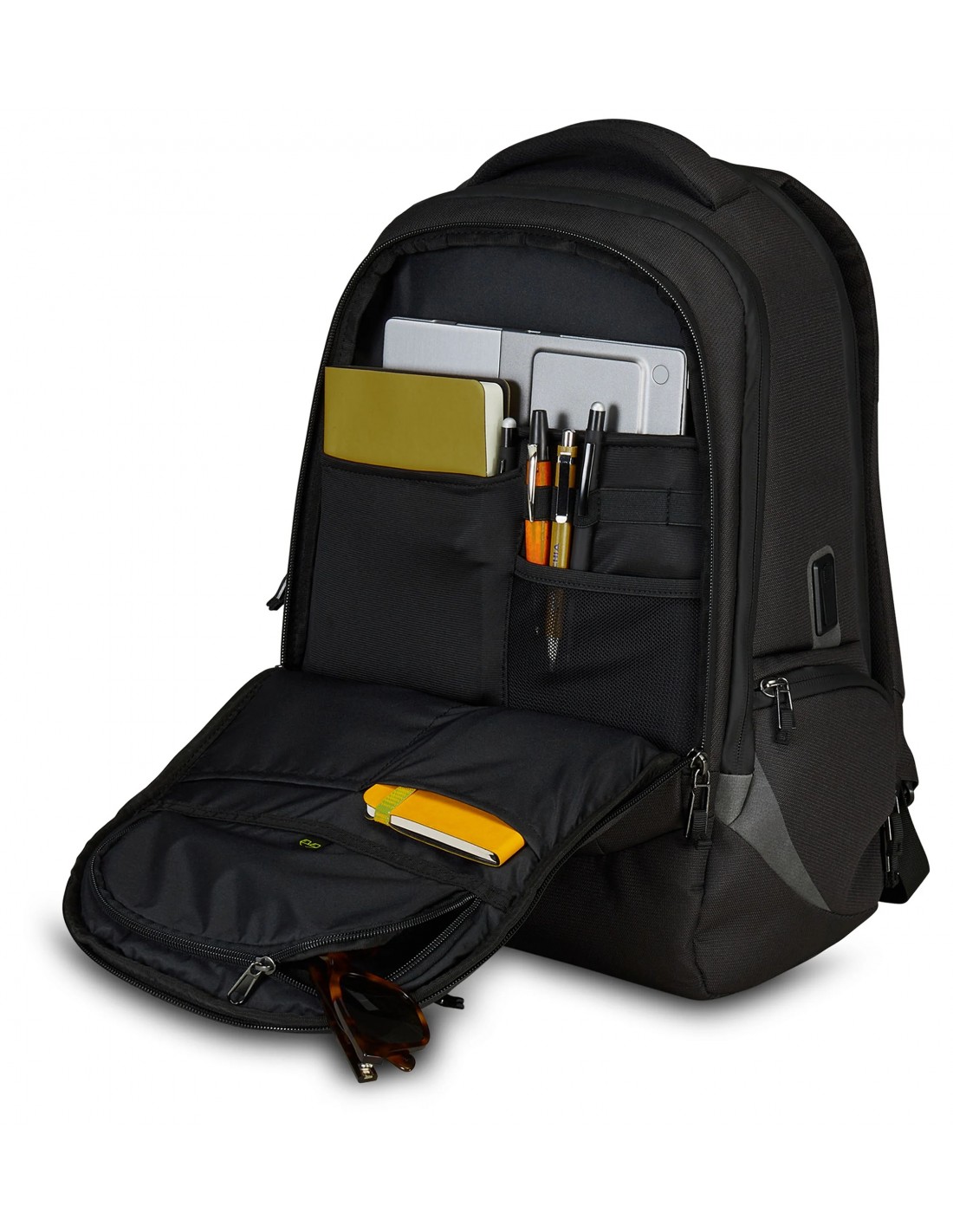 L’ufficio in uno zaino: questo è il Mate M. Zaino doppio scomparto con fondo rinforzato, una capacità di 24 litri e tasche per PC fino a 15,6”, tablet, borraccia, smartphone, documenti e occhiali. Dotato anche di porta USB per la ricarica dei device e tira zip antifurto, è il giusto mix tra compattezza e spazio, funzionalità e protezione, efficienza e praticità per chi è sempre in movimento.